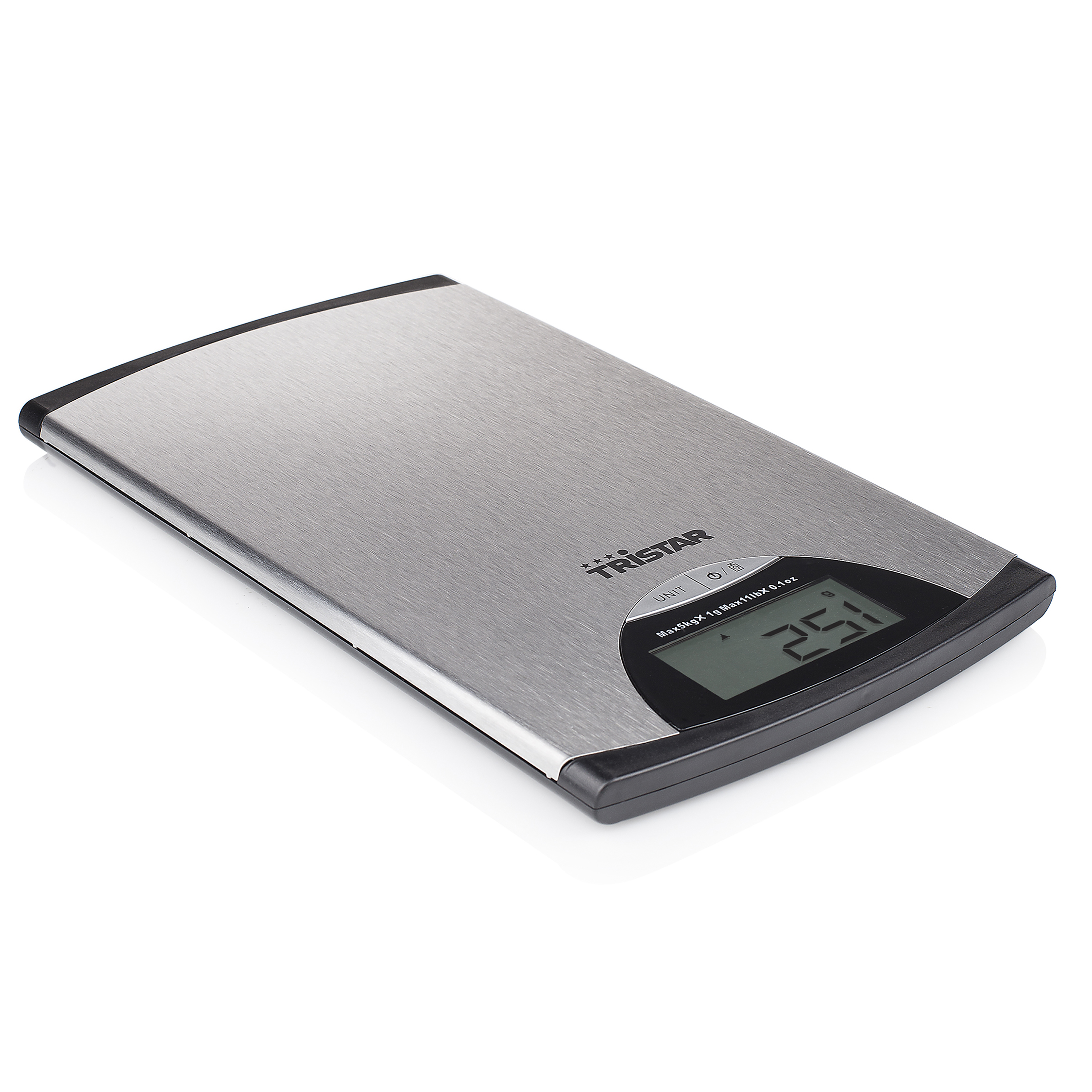 BASCULA DE COCINA 5 Kg. INOX ? Capacidad máxima 5 kg ? Alta precisión 1 g ? Función tara ? Conmutador: kg / lb ? Panel de control digital ? Interruptor de encendido/apagado ? Apagado automático 120 segundo ? Pilas incluidas ? Bateria de Litio ? Base antideslizante