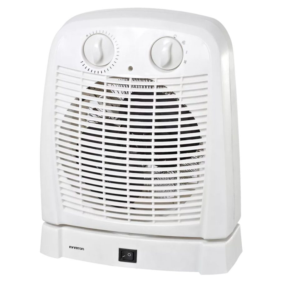2000W de potencia MÁXIMA Oscilamiento lateral automático 2 Niveles de potencia de 1000W / 2000W Funcion ventilador. Soporte anti-vuelco Protección contra sobrecalentamiento Control de temperatura con termostato mecánico 230V / 50Hz Medidas del producto: 28,7 x 22,8 x 12 cm