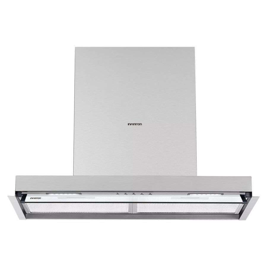 Acabado ACERO INOXIDABLE de alta calidad Clasificación energética: A+ Campana con diseño T-invertido integrable o grupo filtrante 3 Niveles de potencia de succión Control de mandos electrónico 2 Filtros de aluminio incorporado 2 Luces LED incorporadas para visualización del cocinado Descripción de clasificación energética: – Clase eficiencia dinámica de fluidos A – Clase eficiencia de iluminación B – Clase eficiencia filtrado de grasa C MEDIDAS Alto x Ancho x Profundo: Producto (cm) 6-35 x 70 x 33,5 Encastre (cm) 37 x 76,2 x 31,5