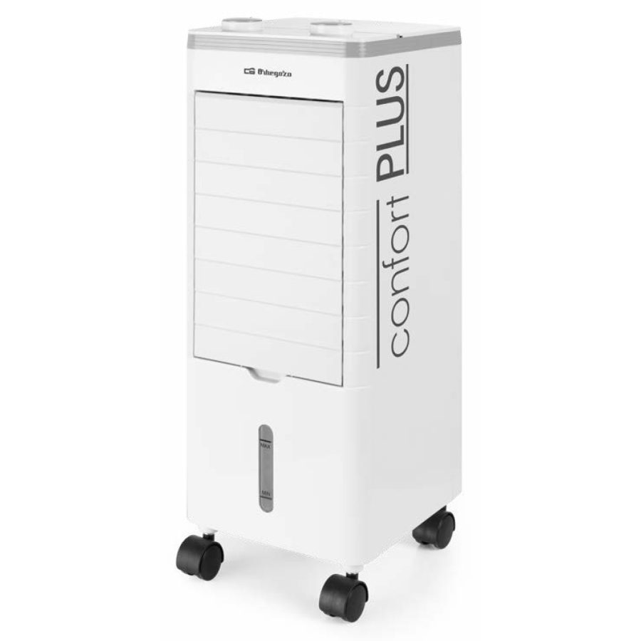 CLIMATIZADOR EVAPORATIVO 3 funciones en 1: ventilador, climatizador y humidificador. Purifica el ambiente eliminando el polvo y malos olores. Filtro lavable. Depósito de agua 3 litros. Silencioso. 3 velocidades de ventilación. Lamas exteriores orientables con posibilidad de cierre completo. Fácil manejo. Práctico para mover con ruedas. Acumuladores de frío incluidos. Potencia: 60W. Medidas (ancho x alto x fondo) mm: 215 x 605 x 250. Peso: 4 kg.