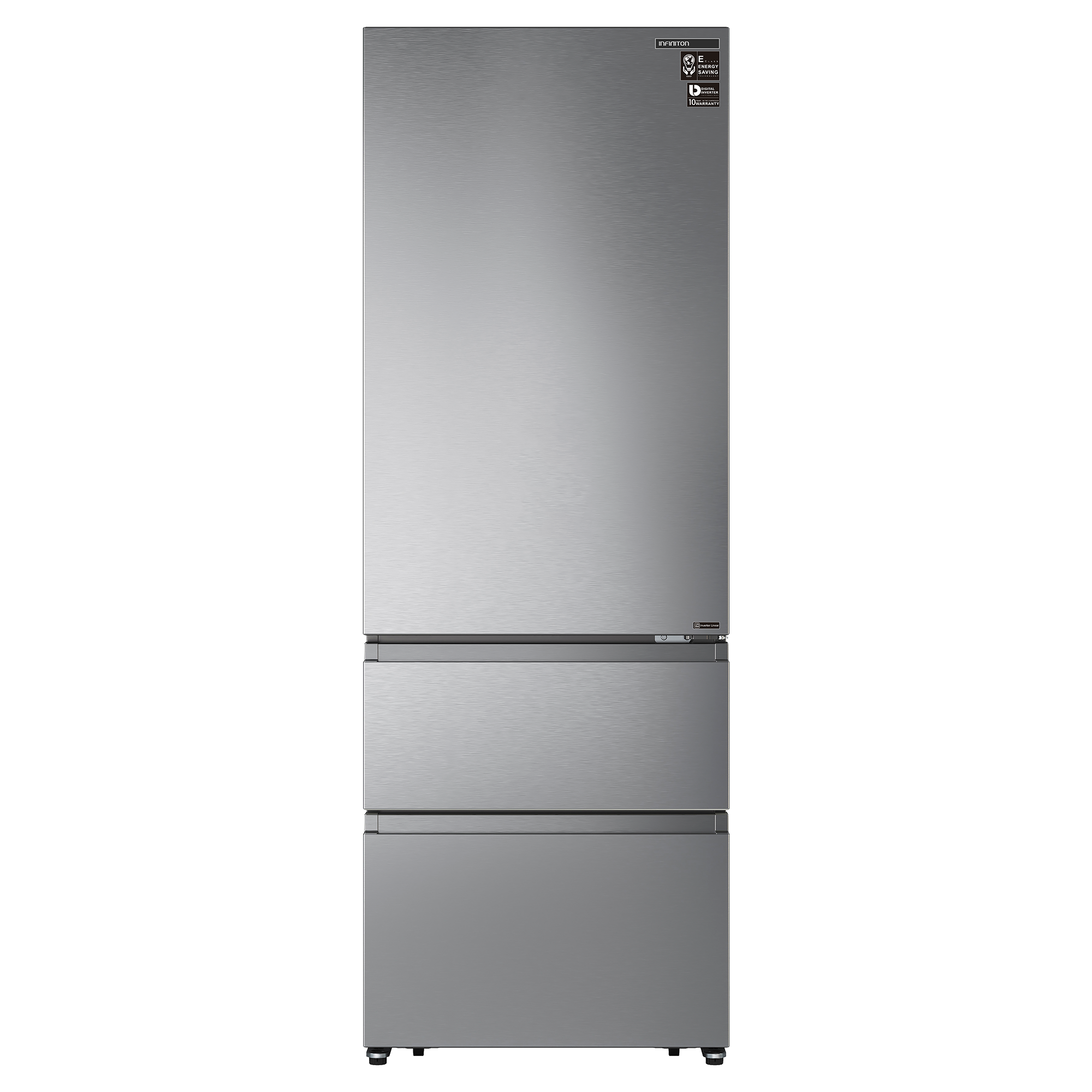Acabado INOX Categoría del producto COMBI FRANCES Calificación energética reescalada E Inverter Technology con compresor Silent design No Frost Metal Technology Control de temperatura digital in-door con display premium LCD touchControl Función Fast cooling Función Fast freezing Función Holidays – Energy saving Función bloqueo de seguridad Iluminación LED interior Alarma óptica y acústica de puerta abierta Equipamiento interior con perfiles cromados 3 bandejas de cristal de seguridad en el refrigerador 3 balcones de puerta refrigerador 1 balcón botellero extra grande 1 cajón Fresh Zone en refrigerador 1 cajón Crisper Box en refrigerador 2 cajones diseño FRANCÉS de alta capacidad con guías telescópicas como congelador Diseño con Tirador integrado para apertura de puertas MEDIDAS Alto x Ancho x Profundo 200 x 70,4 x 69,4