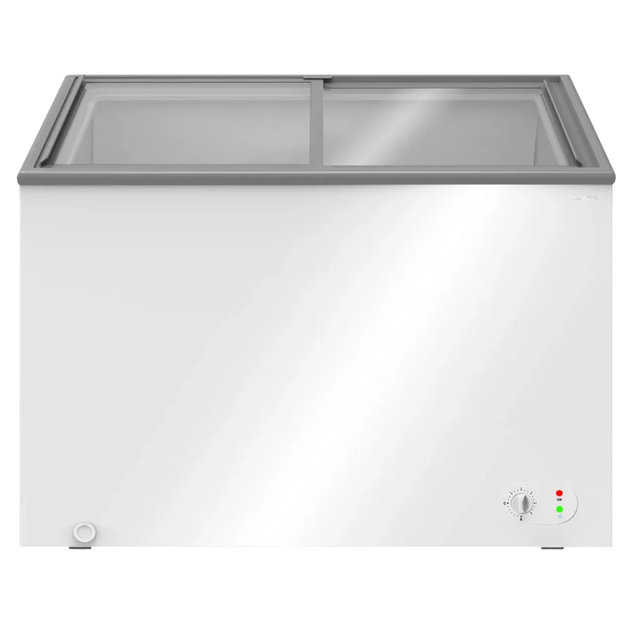 Capacidad total: 209L Clase energética: D 82,5 × 93 × 55,5 cm DUAL SYSTEM 2 en 1, congelador y frigorífico Los nuevos arcones te permiten regular la temperatura del congelador entre los -25º hasta los 5º según tus necesidades Acaba exterior en color Blanco -Puerta con diseño Flat door design -Control de temperatura Mecánico -Tecnología Static Cooling System -Tecnología DUAL SYSTEM -1 Cesto auxiliar de almacenamiento -Interior de Acero galvanizado prerrevestido -LED indicador de funcionamiento -Congelador 4*** -Puerta corredera de cristal templado LOW-E -Cierre de seguridad con llave -Ruedas Free Movement