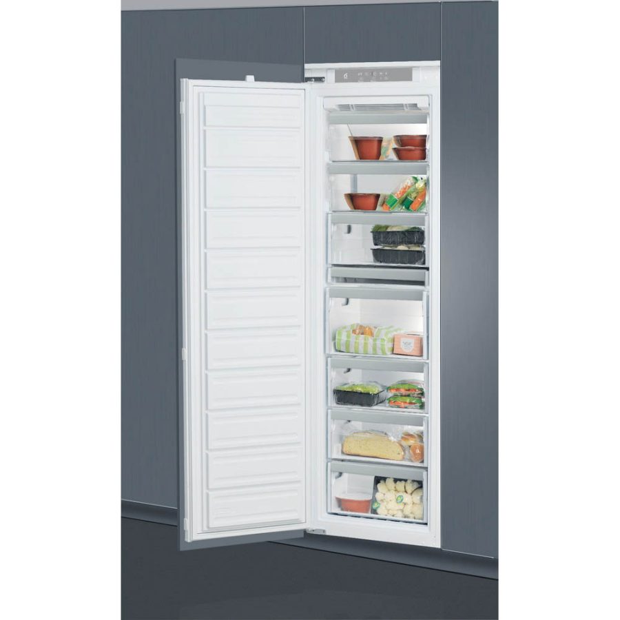 Congelador vertical integrable Whirlpool: color blanco Las características de este congelador vertical integrable Whirlpool: color blanco. No Frost, tecnología sin escarcha, que reduce la humedad en el congelador, previniendo eficazmente la formación de hielo. Tecnología Congelamiento Rápido, que congela tus alimentos más rápidamente, para conservar su sabor, textura y nutrientes.Clasificación energética A+ ? Dimensiones del producto (Altura x Anchura x Profundidad): 1771x540x545 mm ? Capacidad neta Total 209 L ? Capacidad de congelación 19 kg/24 horas ? Tecnología 6th Sense Freeze Control ? Sistema No Frost ? Función Fast Freezing, congelamiento rápido ? Indicador luminoso de congelación rápida ? Temperatura ajustable ? Función Eco Night ? Alarma acústica ? Display LED Centauro Touch interno ? Sistema de congelación para el compartimento del congelador: no frost ? Sistema de desagüe ? Apagado automático de la congelación rápida