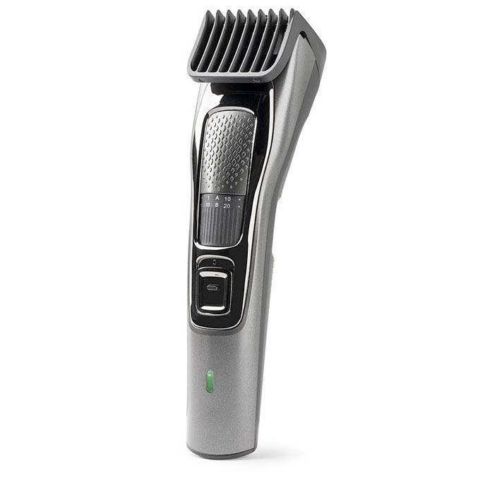 CORTAPELOS. Funcionamiento directo a red y con batería. Sin cable. Autonomía 50 minutos. Recargable. Sistema telescópico de longitud de corte. 2 guías de corte: 1 – 10 mm. / 11 – 20 mm. Cabezal extraíble para fácil limpieza. Cuchillas de acero inoxidable de alta resistencia. Interruptor de encendido. Indicador luminoso de carga y funcionamiento. Gran precisión de corte. Accesorios de barbero incluidos: tijeras, peine, aceite lubricante, cepillo para limpieza de cuchillas, adaptador de carga. Diseño ligero y ergonómico. Adaptador multicorriente de 100-240 V. (incluido).