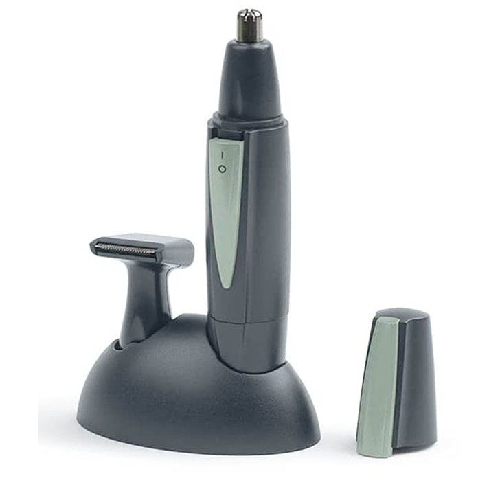 CORTEFÁCIL Especial nariz, patillas y orejas. Corte seguro y limpio. Protegido contra proyecciones de agua (IPX4): Apto para su uso en la ducha. Cabezal extraíble para fácil limpieza. Luz integrada para una óptima visión. Diseño ligero y ergonómico. Interruptor de encendido. Accesorios incluidos: cepillo para limpieza y soporte sobre mesa. Tapa protectora. Funciona con 1 pila ?AA? de 1,5 V. (No incluida)