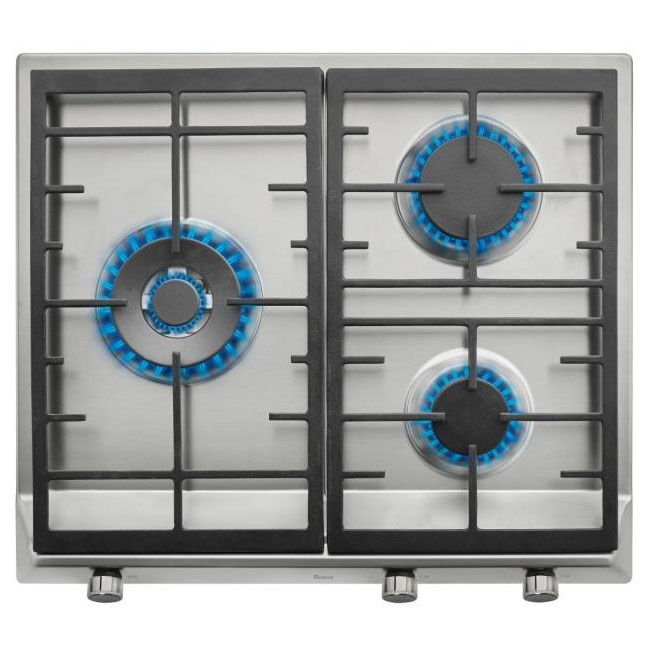 3 fuegos, 1 doble anillo, mandos frontales metalizados, quemadores alta eficiencia, fundición amplia sup.
