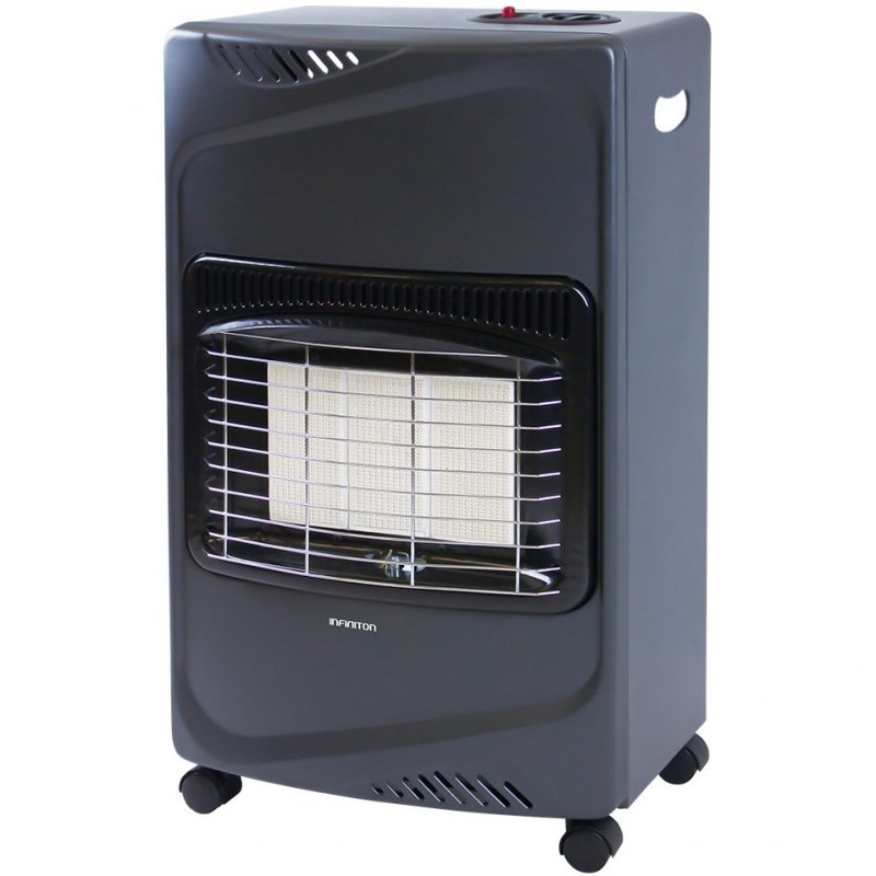 Ignición electrónica / piezoeléctrica Apta para Propano y Butano Acabado de acero en color negro Libre instalación 3 placas cerámicas Potencia 1500W/2850W/4100W 42 horas de autonomía de funcionamiento con una bombona de 13 kilos Sistemas de seguridad: – Dispositivo de seguridad ODS y FFD – Sistema anti vuelco – Sensor de oxígeno* Superficie de calentamiento 30m2** Cilindro de gas que soporta hasta 15Kg Presión (mbar): 28 / 30 Salida de gas (KW): 1.5 (min) / 2.8 (med) / 4.1 (max) Consumo de gas (g/h): 109 (min) / 204 (med) (**) Superficie estimada en metros cuadrados con una altura media de techo de 2,55 metros (*) El sensor interrumpirá el suministro de gas cuando el contenido de CO2 de la habitación supere aproximadamente el 1,5% ESPECIFICACIONES Alto x Ancho x Profundo: 73 x 42 x 25,5 cm