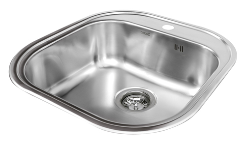 Fregadero sobre encimera de cubeta cuadrada. Instalación en mueble de 45cm. Profundidad de la cubeta 16,5cm. Acero inoxidable AISI 304 18/8. Válvula canasta 3 1/2?. Grosor 0,8mm. Accesorios: Cinta de estanqueidad, Grapas de fijación, Tubo rebosadero y Sifón