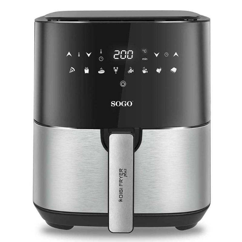 FREIDORA DE AIRE ELÉCTRICA 5L ? Saludable y utiliza un 80% menos de grasa que una freidora convencional ? Cesta freidora con revestimiento antiadherente de 5L y pinza de nylon ? Pantalla de Luz led digital y panel de control táctil ? 8 funciones de menú ? Recetario incluido ? Recordatorio (Aviso) automático de remoción de la comida a medio proceso de cocción ? 360° Tecnología de circulación de aire caliente y a alta velocidad ? Control de temperatura totalmente ajustable, 80° – 200°C ? Temporizador con función de apagado automático, en el rango de tiempo de 1-60min ? Timbre de auto listo y protección contra el sobrecalentamiento