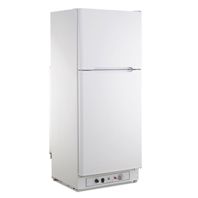 Color Blanco. Capacidad total 175 litros (Nevera 129L y Congelador 46L). Doble alimentación ( Gas Butano o Electricidad AC 220V-240 50/60Hz). Temperatura Nevera: 0-10ºC ? Temperatura Congelador: -15ºC Válvula de Seguridad. Indicador Llama. Estantes Nevera: 3 ? Estantes Congelador: 1 Luz interior LED. Apertura de puertas intercambiable Patas ajustables. Consumo: 0,5Kg/24 horas. Dimensiones: 1460(Alto) x 600(Ancho) x 650(Profundo)mm.