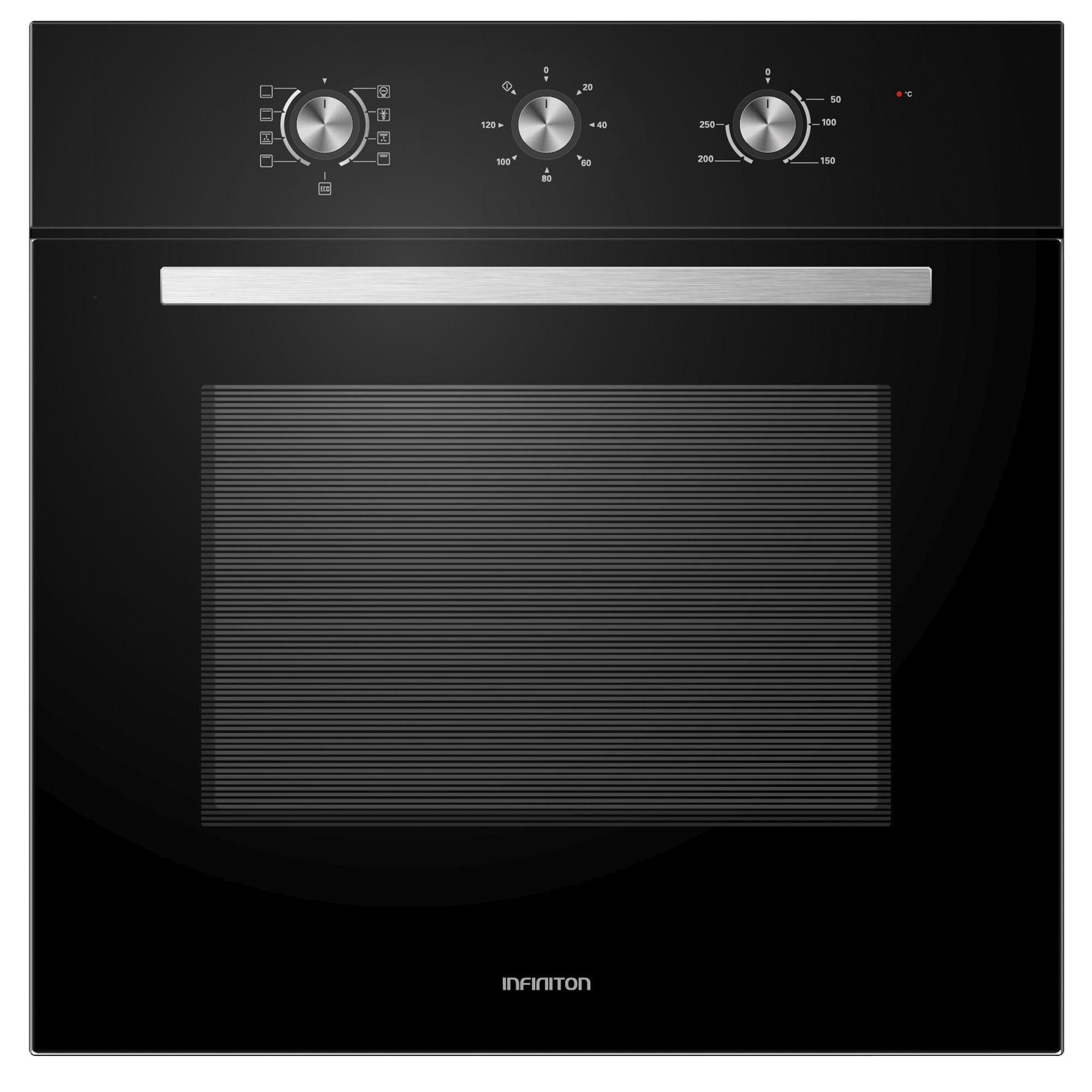 Acabado CRYSTAL BLACK Clase energética A Control mecánico con Termostato regulable 8 funciones: – Defrost (descongelación) – Calentador inferior – Calentador convencional – Calentador convencional + Ventilador – Grill – Grill doble – Grill doble + Ventilador – Lámpara Control de tiempo integrado Iluminación interior Puerta de doble acristalamiento Cavidad interior esmaltada y moldeada Accesorios (Rejilla metálica, bandeja de horno) Tirador con acabado INOX MEDIDAS Alto x Ancho x Profundo Producto (cm) 59,5 x 59,5 x 57,5 MEDIDAS Alto x Ancho x Profundo Encastre (cm) 57+1 x 56+1 x 54,8+1