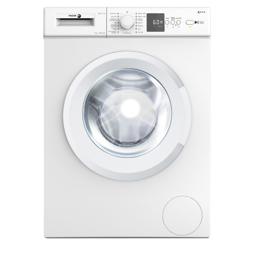 ? Lavadora de Libre instalación ? Color: Blanco ? Capacidad 7 Kg ? 1200 rpm ? Control Electrónico con Display ? Indicador de tiempo restante ? Puerta de 440 mm ? Ojo de buey de 300 mm ? 15 Programas ? Programas especiales: Lana, Antialérgico y Lavado a mano ? Lavado Rápido 15 minutos ? Programación Diferida, Selector de Temperatura y Centrifugado ? Control de Carga ? Bloqueo niños ? Categoría Energética A+++ ? Eficiencia Centrifugado: B ? Consumo Energía: 172 kWh/año ? Consumo de Agua: 10.337 L/año ? Ruido Lavado: 58 dB(A) ? Ruido Centrifugado: 75 dB(A) ? Motor Universal ? Potencia:2100 W ? Potencia Calentamiento: 1850 W ? Tensión: 220-240V/50Hz ? Volumen Tambor: 49 Litros