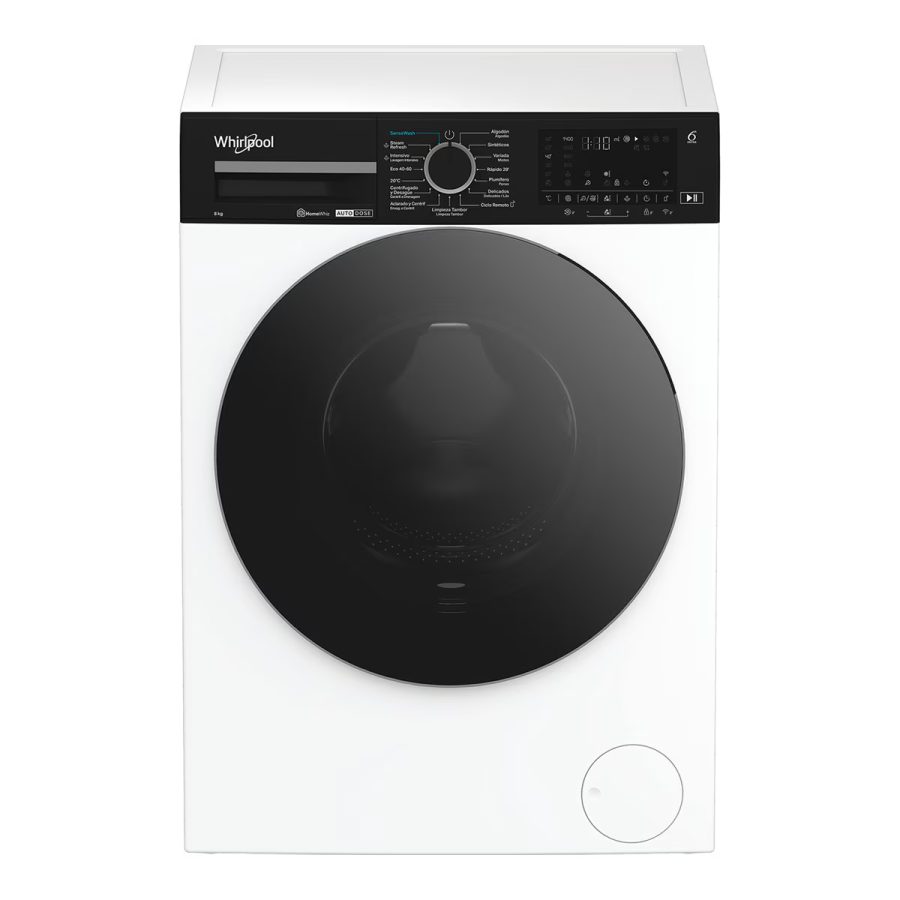 Motor Sense Inverter – 10 años de garantía ? Capacidad de carga: 8 kg / Centrif. Variable 1400 rpm ? Clase de eficiencia energética: A-10% ? Tambor de 55 litros ? Home Whiz (Conectividad)No importa si estás en casa o fuera, la aplicación garantiza que cada lavado se gestiona a la perfección, proporcionando tranquilidad en cada ciclo, todo desde la comodidad de su dispositivo móvil. ? AutoDose para un lavado eficaz. *Un dosificador lleno será suficiente para 18 ciclos. ? Con la tecnología Adaptive Wash, cada ciclo responde a las necesidades específicas de su colada recogiendo información a través de Home Whiz. ? Tecnología 6º SENTIDO (sensores de regulación de agua, tiempo y energía) ? SenseWash garantiza un cuidado completo de la ropa. El consumidor solo tiene que meter la ropa y la máquina es la que decide todo. ? Steam Technology La avanzada Tecnología de Vapor de Whirlpool suaviza la suciedad y levanta las manchas, facilitando su eliminación. . ? Steam Refresh permite mantener la ropa fresca y reduce las arrugas de la ropa seca hasta en un 58%, Evita olores y reduce el planchado en un 28%. ? Consumo de agua: 44 L / ciclo ? Consumo de Energía: 44 kWh / 100 ciclos ? Nivel de Ruido Centrif.: 75 dB(A) – Clase B MEDIDAS 845 x 600 x 580 mm (Al xAn xF)