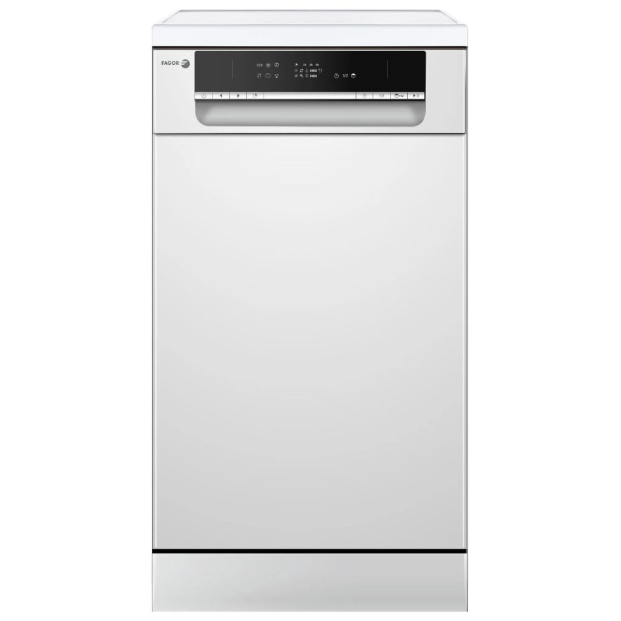 Lavavajillas de 45 cm Blanco | Control Electrónico | Capacidad: 10 Cubiertos | EcoBar | 6 Programas | Programa Delicado para Cristalería, Eco y Rápido 30′ | Inicio Diferido 3-6-9 y Secado Extra | Consumo de agua: 9 Litros | Media carga | Motor de 2 velocidades | Clase Energética E| Ruido: 47 dB