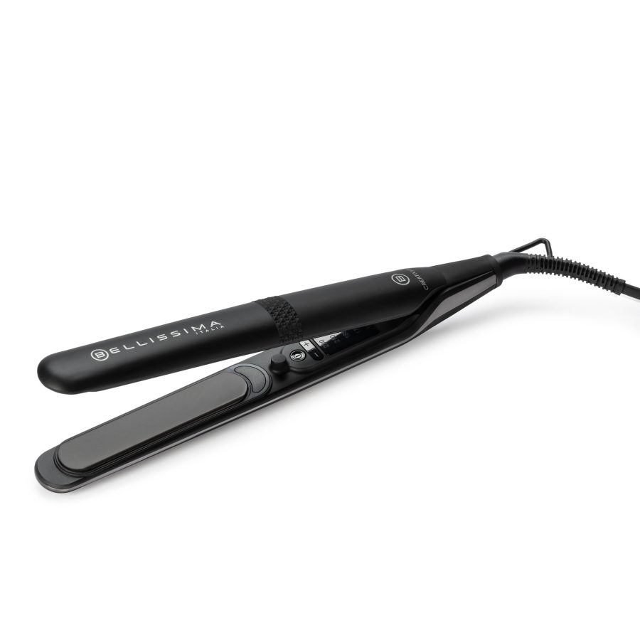 Placas redondeadas basculantes de cerámica con micropartículas de diamante y queratina, 5 Temp.: 150°C – 170°C – 185°C – 210°C – 230°C, Display LED, Autoapagado 60 min, Función memoria último uso, cable gitarorio 1,8m.