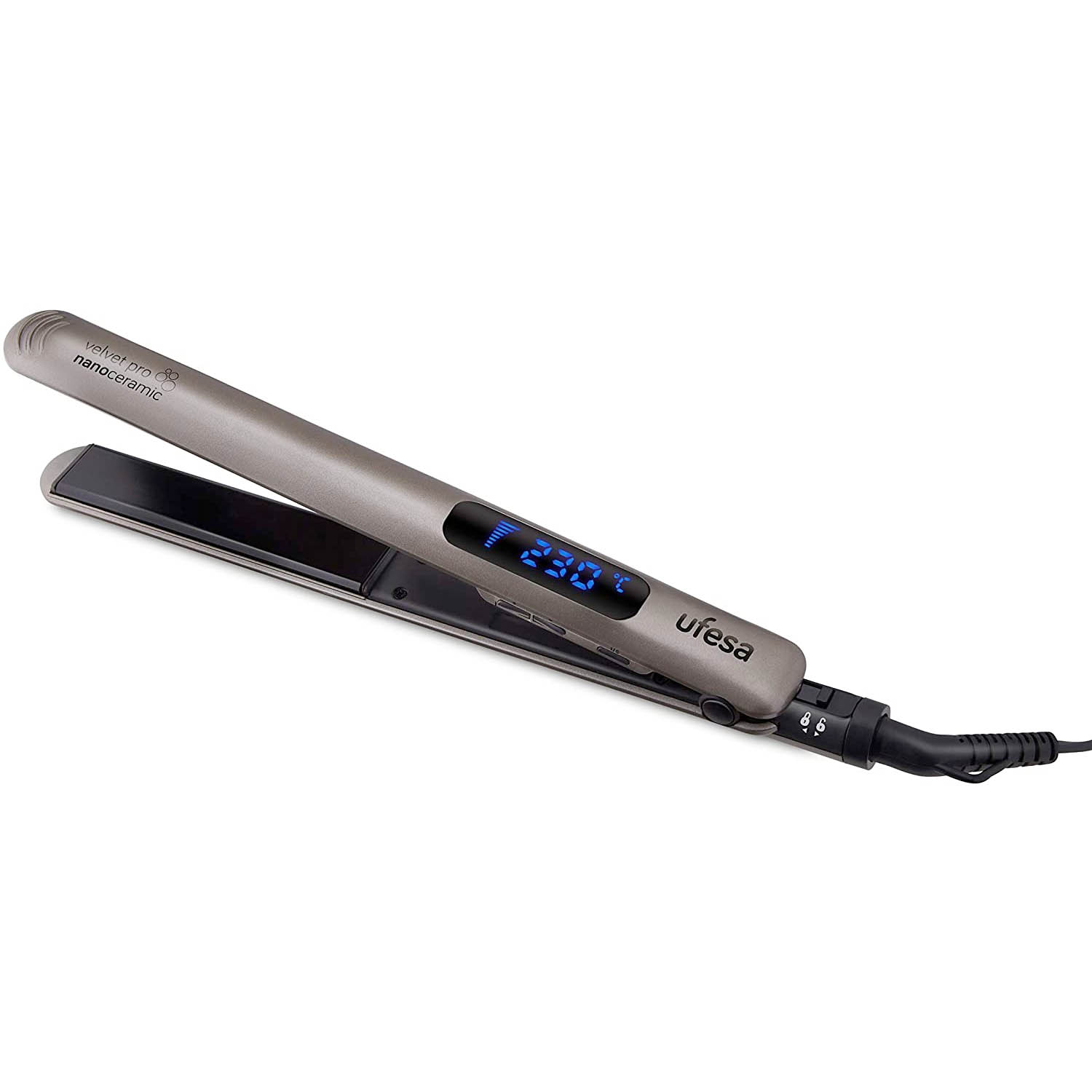 Plancha de pelo Placas basculantes extra largas recubieras de nano cerámica Alisa y riza Temperatura 150º a 230ºC Funda protectora