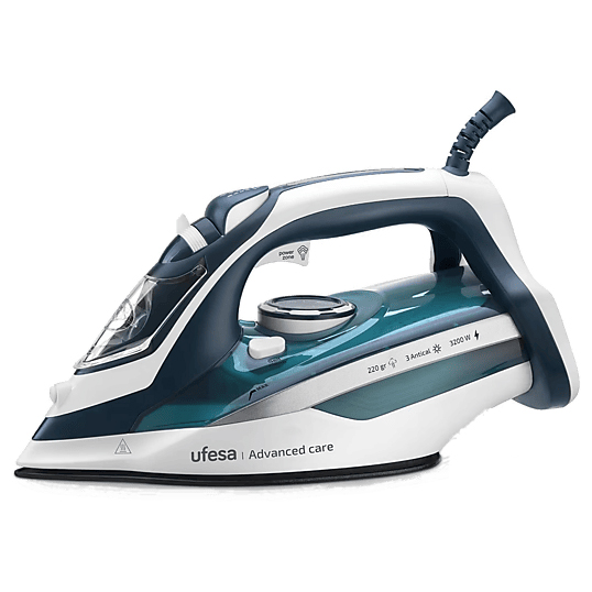 3200W Golpe de vapor: 220gr Vapor constante: 40gr / min Dosificación de vapor variable Sistema antical 3 en 1 (1-Sistema de autolimpieza, 2-Golpe antical, 3- Cartucho antical) Capacidad del depósito: 450ml Sistema antigoteo Planchado vertical Planchado con vapor o en seco Función de pulverización Suela cerámica ?Advanced Glide? Dimensiones suela 24×12.8cm Cable largo de 1,9m