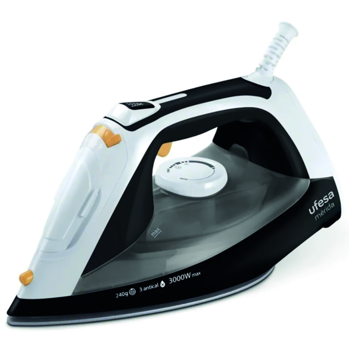 Potencia 3000W Golpe de vapor: 240gr Vapor constante: 45gr / min Dosificación de vapor variable Sistema Calc?n Clean Sistema antical 3 en 1 (1-Sistema de autolimpieza, 2-Golpe antical, 3- Cartucho antical) Capacidad del depósito: 400ml Sistema antigoteo Planchado vertical Planchado con vapor o en seco Función de pulverización Suela cerámica Talón diseñado para guardar el cable fácilmente