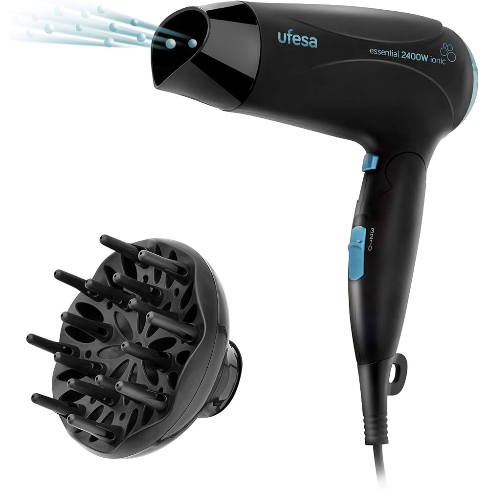 Secador plegable de 2400W Generador de Iones 3 Velocidades/ temperaturas Difusor y concentrador Golpe de aire frio Anilla colgador