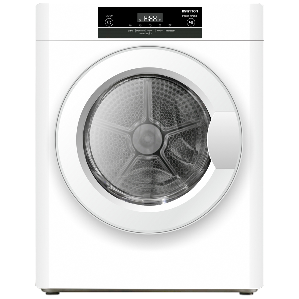 Clasificación energética C Capacidad 3 kg Secadora de evacuación AIR VENTER Display LED Control electrónico Funcionamiento por sensores Selección de tiempo de secado Inicio programado 5 Programas (Extra, Standard, Rápido, Tiempo+, Refresh) Bloqueo infantil 64 x 43,5 x 52 cm