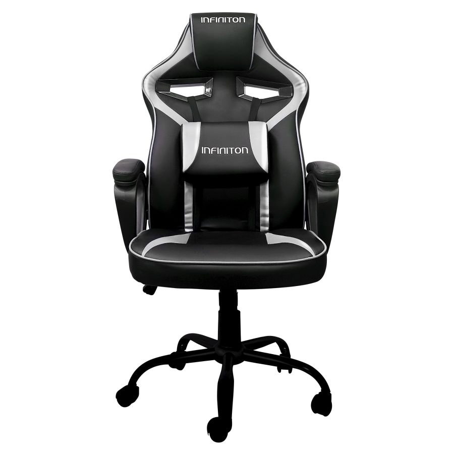Detalles en polipiel con contraste de color Reposabrazos con estructura fija y confortable Ajuste en altura controlado por pistón de gas clase 4 Esqueleto de aluminio reforzado de 350mm Relleno de Espuma moldeada en frío Ruedas para un deslizamiento 3D para todo tipo de suelos Respaldo ergonómico reclinable de dos posturas Cojín lumbar y reposacabezas de espuma moldeada ajustable Soporta hasta 120 Kg Medidas embalaje: 77 x 32 x 59 cm Medidas de producto: 115 – 123,5 x 64,7 x 67,5 cm Peso Neto/Bruto: 15/17 Kg