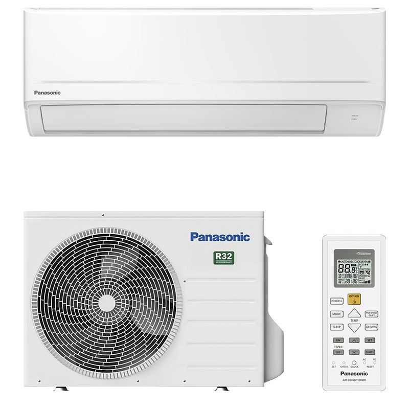 Combinación formada por: Unidad interior CS-BZ35XKE Unidad exterior CU-BZ35XKE Mando a distancia Nuevo BZ, compacto y eficiente Diseño compacto y elegante con solo 779 mm de ancho Alto ahorro de energía: A++ Aire más limpio con filtro PM2.5 Internet opcional y control de voz Más comodidad con Aerowings Longitud de tubería larga ¡Súper silencioso! Solo 20dB(A) Estas unidades se pueden instalar en tuberías R410A y R22 Características a destacar del Panasonic KIT-BZ35-XKE Diseño moderno y elegante blanco mate. El aire acondicionado perfecto para los espacios más pequeños de tu hogar. Nuevo diseño súper-compacto El nuevo BZ tiene un ancho de solo 779 mm. Esto permite más posibilidades de instalación, incluido el espacio limitado sobre una puerta. Filtro PM2,5 integrado Las partículas (PM2,5) se pueden encontrar suspendidas en el aire, incluido el polvo, la suciedad, el humo y las gotas de líquido. El filtro puede atrapar partículas PM2,5, incluidos contaminantes peligrosos, así como polvo doméstico y polen, y puede mantener limpio el aire de la habitación. Más comodidad con Aerowings Para aumentar el nivel de comodidad, las unidades interiores BZ incluyen Aerowings. Control superior del flujo de aire. Aerowings cuenta con dos aspas independientes que le brindan más control sobre la dirección del flujo de aire. Sin Aerowings, con flujo de aire directo, el objetivo nunca cambia, por lo que fácilmente puede comenzar a sentir demasiado frío mientras está sujeto a la continua ráfaga de hielo. Wi-Fi opcional compatible con Voice Assistant Con CZ-TACG1 opcional y la aplicación Panasonic Comfort Cloud en su teléfono inteligente administra todas las funciones hasta 200 unidades, tiene acceso a estadísticas de energía, configurar la programación anticipada y definir diferentes derechos de acceso a otros usuarios. Esto funciona con el Asistente de Google y Amazon Alexa.