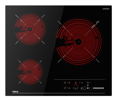 Cristal con acabado redondeado Touch Control con sensores acústicos y bloqueo de seguridad Programador del tiempo de cocción hasta 99 minutos con avisador acústico (posibilidad de programar todas las placas a la vez) 3 zonas de cocción: -1 placa High Light de Ø 140 mm -1 placa High Light de doble circuito de Ø 120 / 180 mm -1 placa High Light de doble circuito de Ø 210 / 270 mm Función MestrePaeller Funciones Arroz, Yogurt Función Power Plus de máxima potencia en todas las placas (1.200 W – 1.700 W – 2.400 W) Sistema fácil instalación Fast-Click